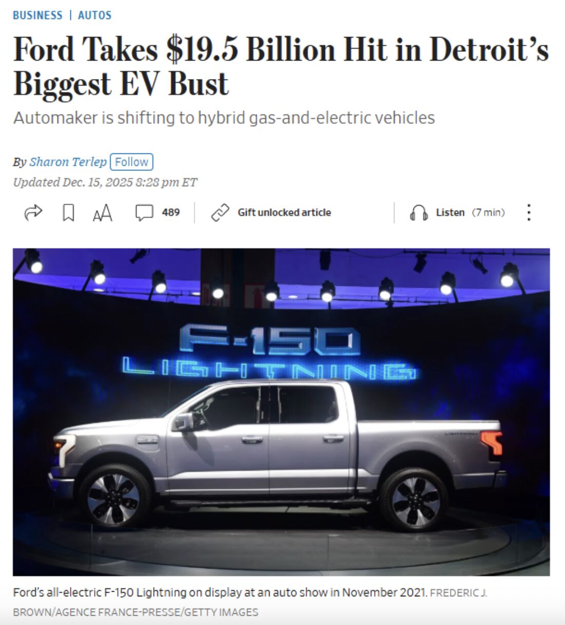 “Instead of plowing billions into the future knowing these large EVs will never make money, we are pivoting,” Ford Chief Executive Jim Farley said in an interview. “We now know enough about the U.S. market where we have a lot more certainty in this second inning” of reduced-emissions powertrains, he said…