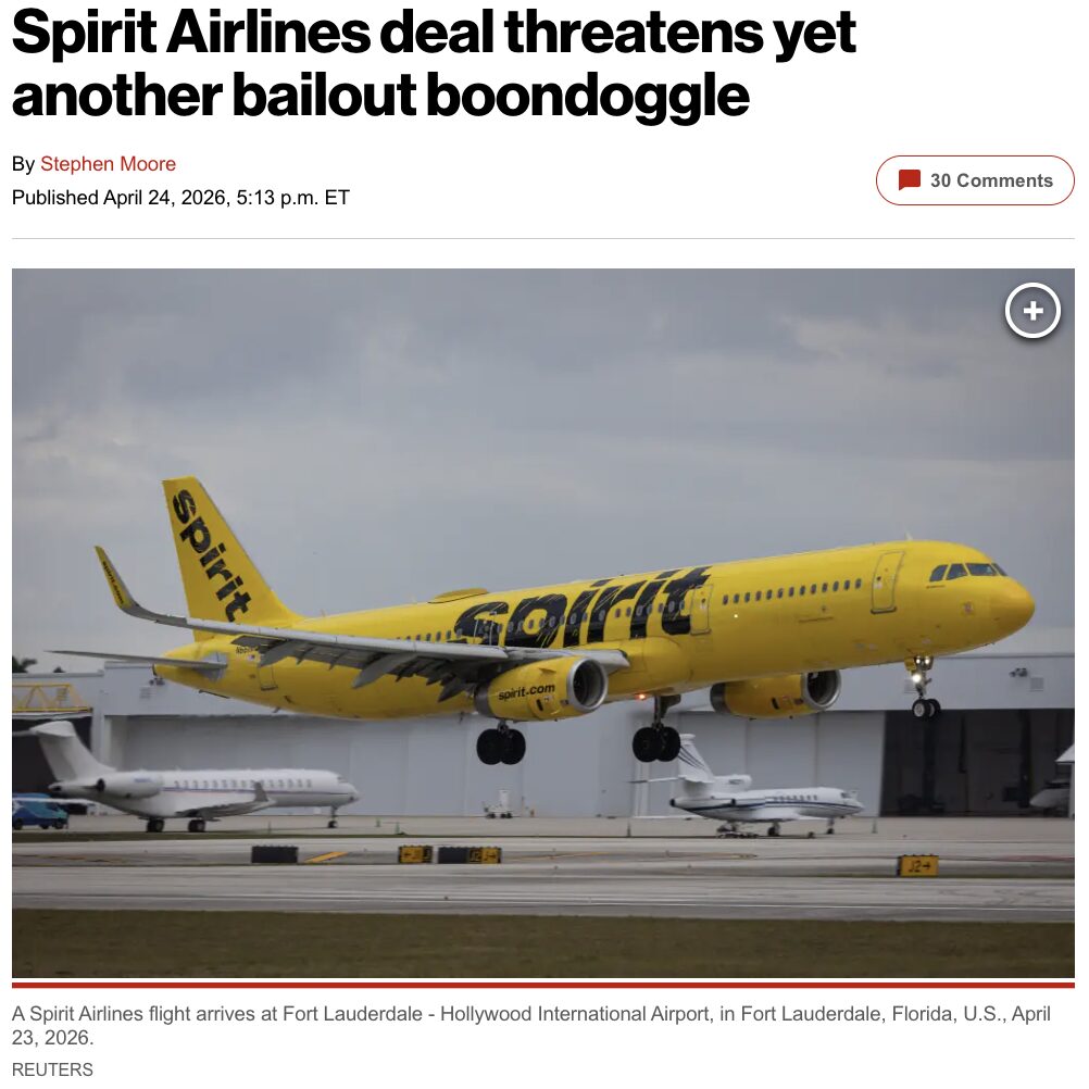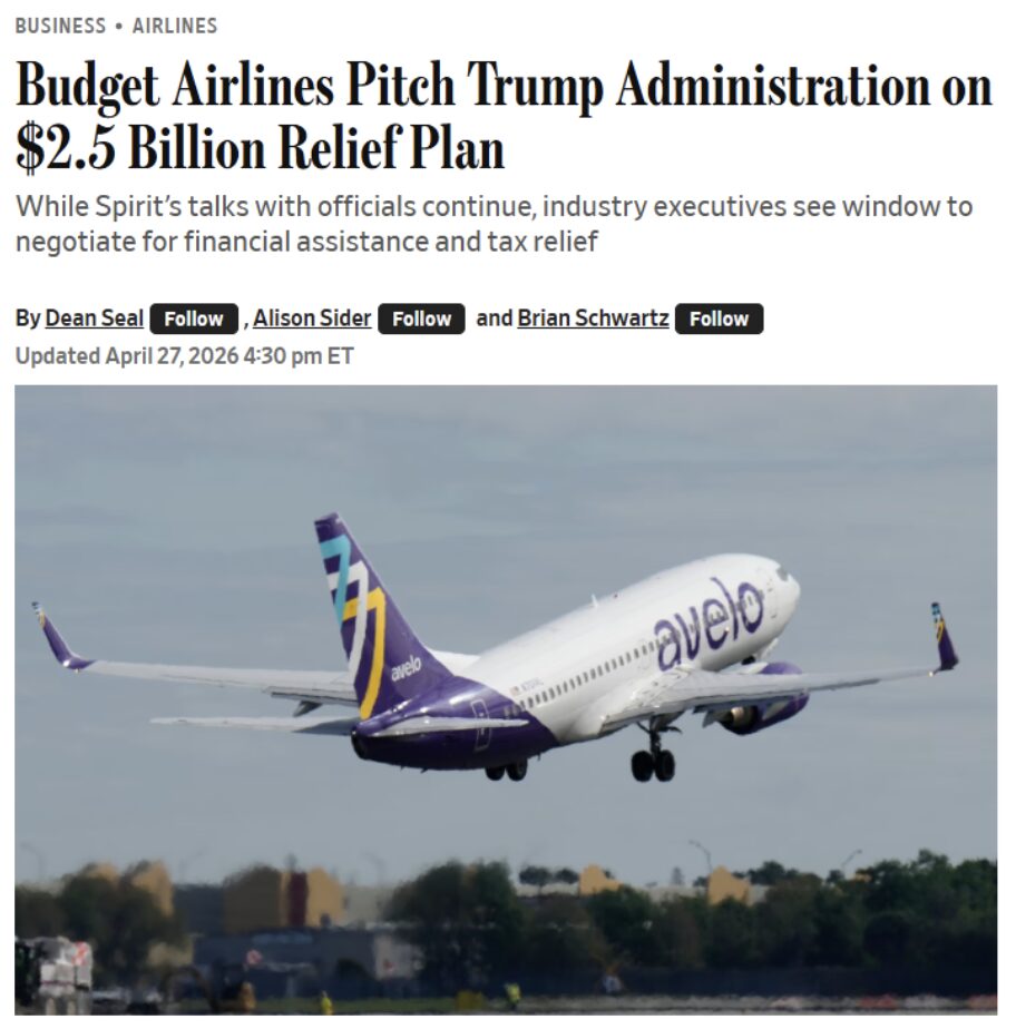 Surprise, surprise. Now that the Trump administration has floated a bailout for Spirit Airlines, a lot of other airlines are lining up for an infusion of taxpayer dollars. The WSJ reports: