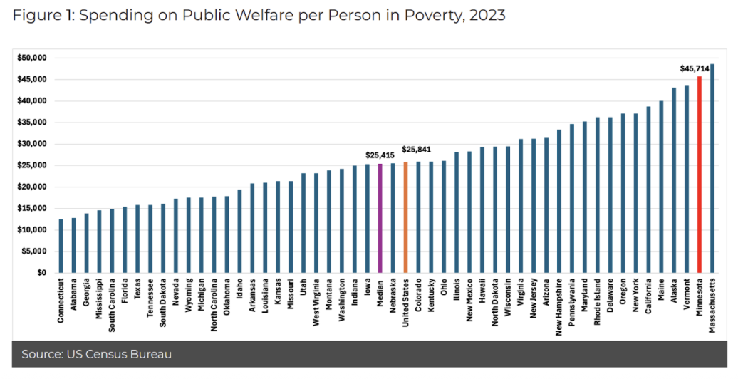 The state spends a stunning $45,000 per person in poverty, trailing only Massachusetts.