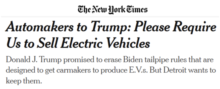 Here’s a pathetic but not entirely unexpected headline: The car companies that have gotten used to serving politicians instead of customers want to keep the … Continue reading Automakers Beg Trump to Keep EV Mandates