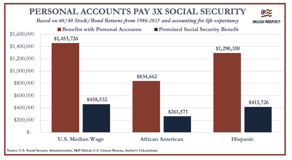 Fink may have been persuaded by this chart we sent to him, showing three times higher returns for young workers with personal accounts.