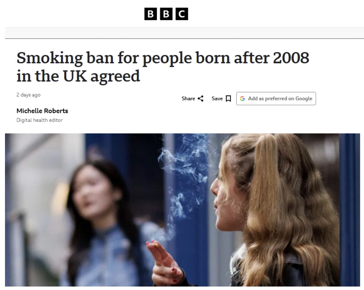Speaking of stupid Nanny State government interventions, the Brits just adopted a phased in ban of cigarettes, cigars and vaping: