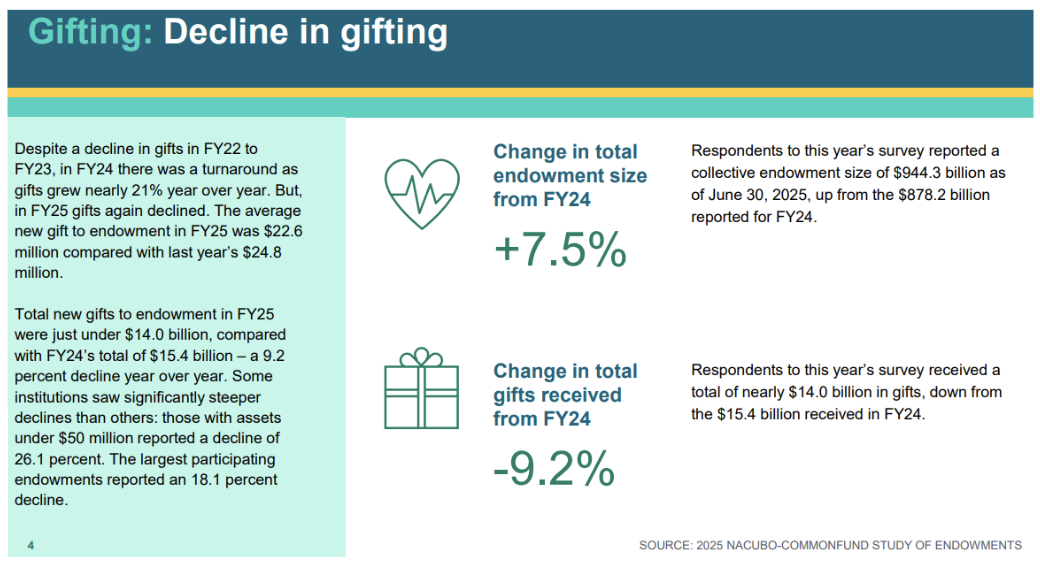 The National Association of College and University Business Officers (NACUBO) and the Commonfund also issued an annual report on college endowments, based on data from 657 schools with nearly a trillion dollars in assets.