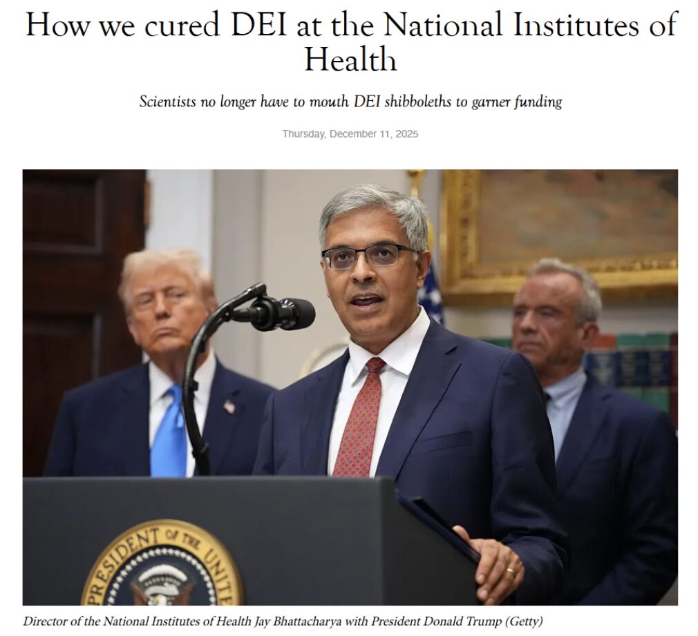 Kudos to our friend Jay Bhattacharya for banishing racially discriminatory research at the NIH. Dr Jay laid all this out with his deputy Matthew Memoli at the Spectator: