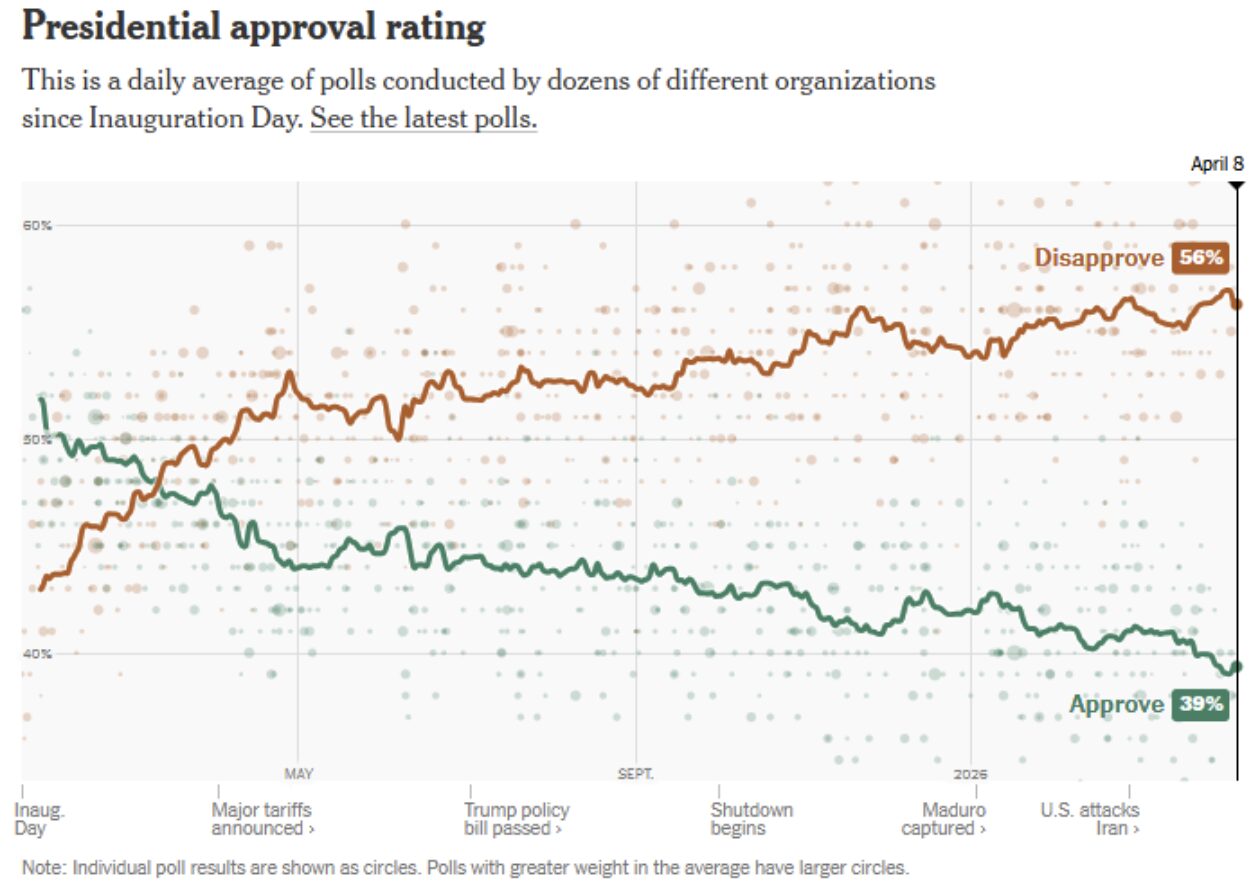 Donald Trump’s popularity has fallen to the lowest point of his second term – just 39 percent.