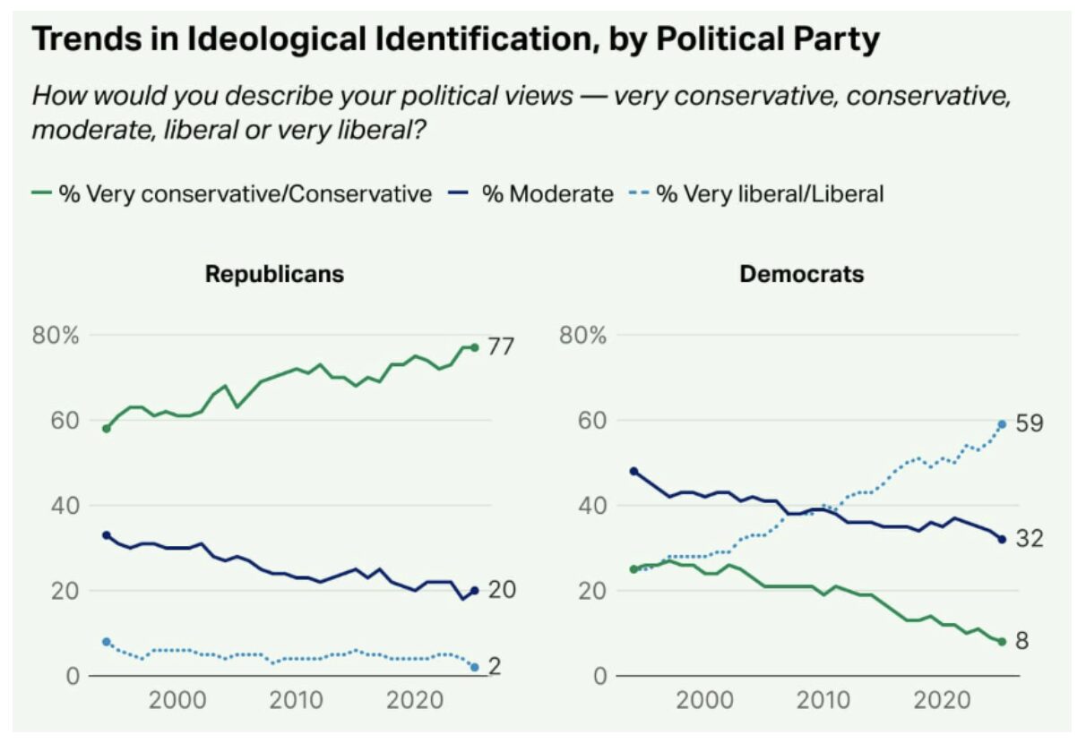 It’s easy to see why, given the Left’s focus on taxing, spending, and regulating – and pushing social and economic issues – like climate change and men in women’s sports – that appeal to a fringe minority. A Gallup poll from last year showed that liberals make up 59 percent of the party – up from just 25 percent in 1994.