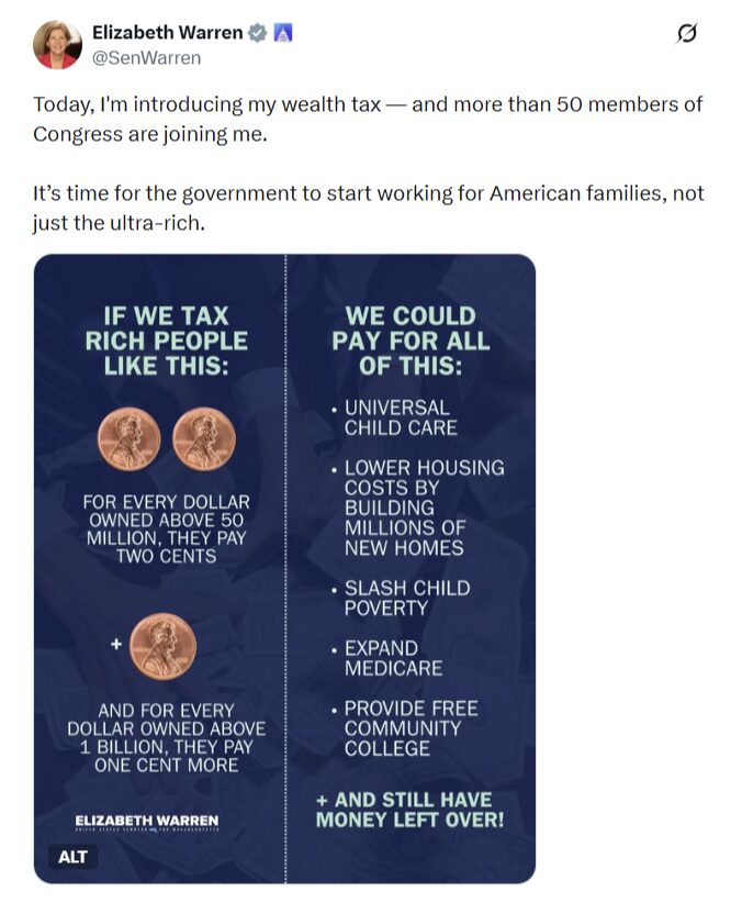 What a sad day this is for America. Massachusetts Senator Elizabeth Warren (D, MA) now wants to impose a first-ever wealth tax on Americans – just as we predicted.