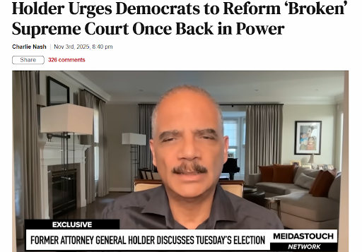 He told the liberal news outlet Meidas Touch it’s time for progressives to implement “substantive reforms” of the Supreme Court, calling it “a broken institution” that was causing “an untold amount of damage to the fabric” of the country.