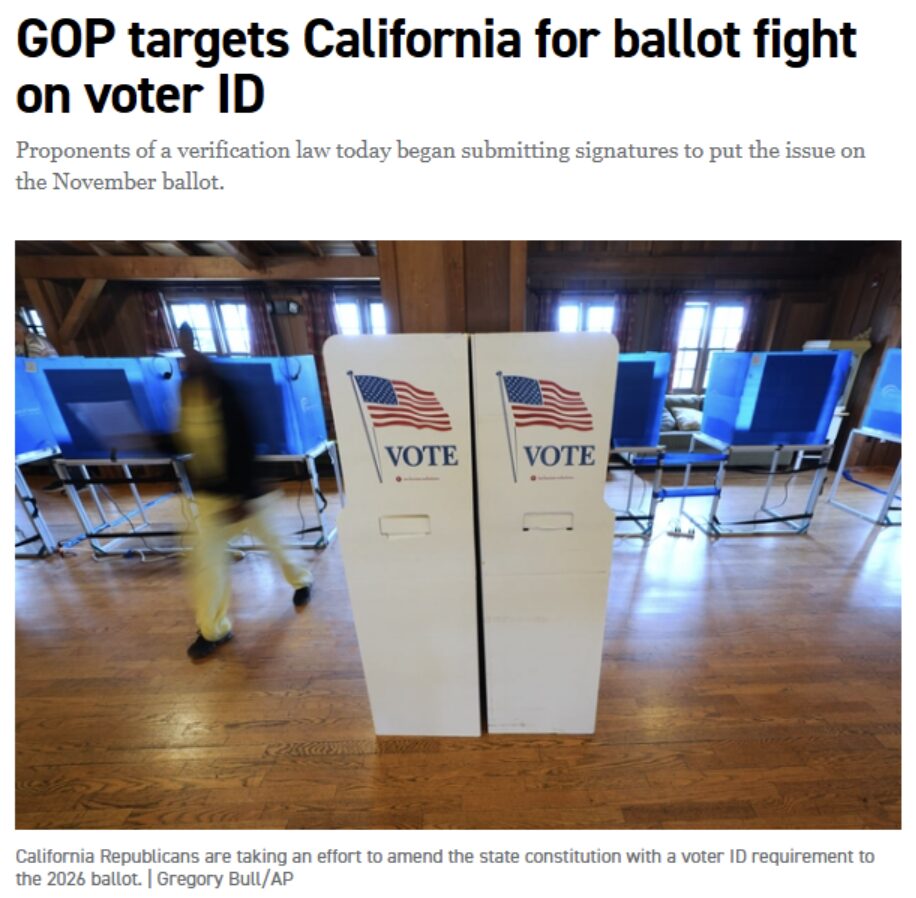 But that’s not how his constituents in California see it. Many of them have just finished collecting 1.3 million signatures to qualify a constitutional amendment to implement voter ID at the polls. It would also require those voting by mail to give the last four digits of a unique identification number form a government-issued ID.