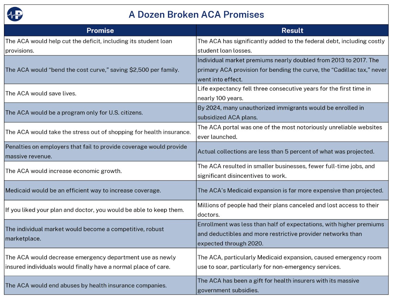 Last year, we published a joint paper with the Paragon Institute, running through the top dozen broken promises of Obamacare. This is a list worth revisiting as Congress debates extending Biden’s super-sized COVID subsidies to “save” the failing program by throwing even more taxpayer dollars at it.