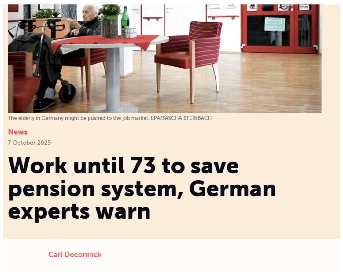 From Germany, which may adopt a proposal to raise the retirement age to 73.