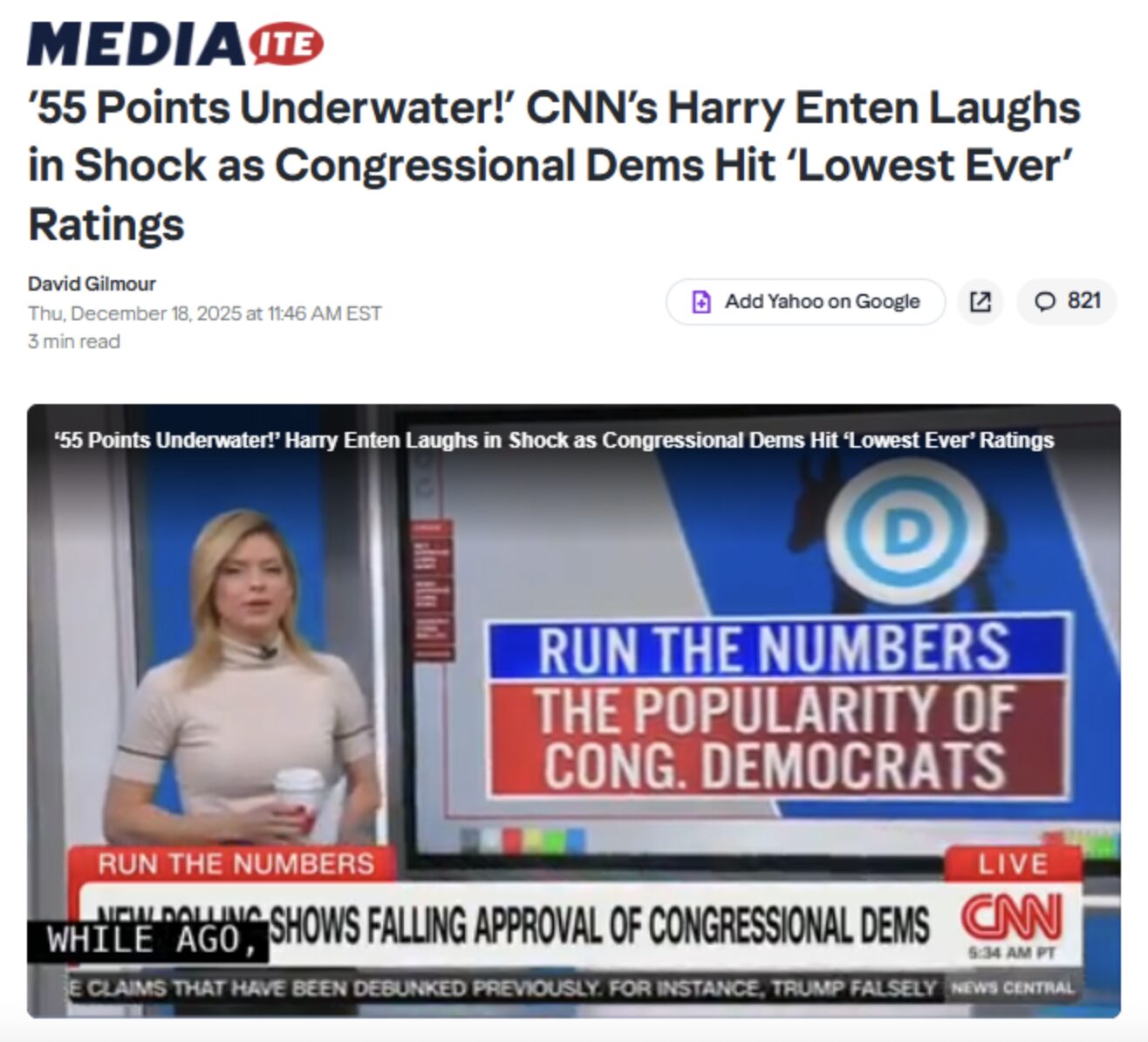 CNN data guru Harry Enten was in disbelief at that number, saying that “in the minds of the American public…” Democrats “…are lower than the Dead Sea.”