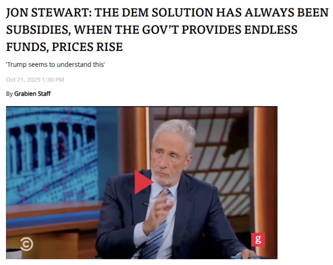We wondered about that when this week Stewart challenged the Democratic talking points on the government shutdown: that health costs will rise if COVID-emergency supersized subsidies to health insurance companies aren’t extended.