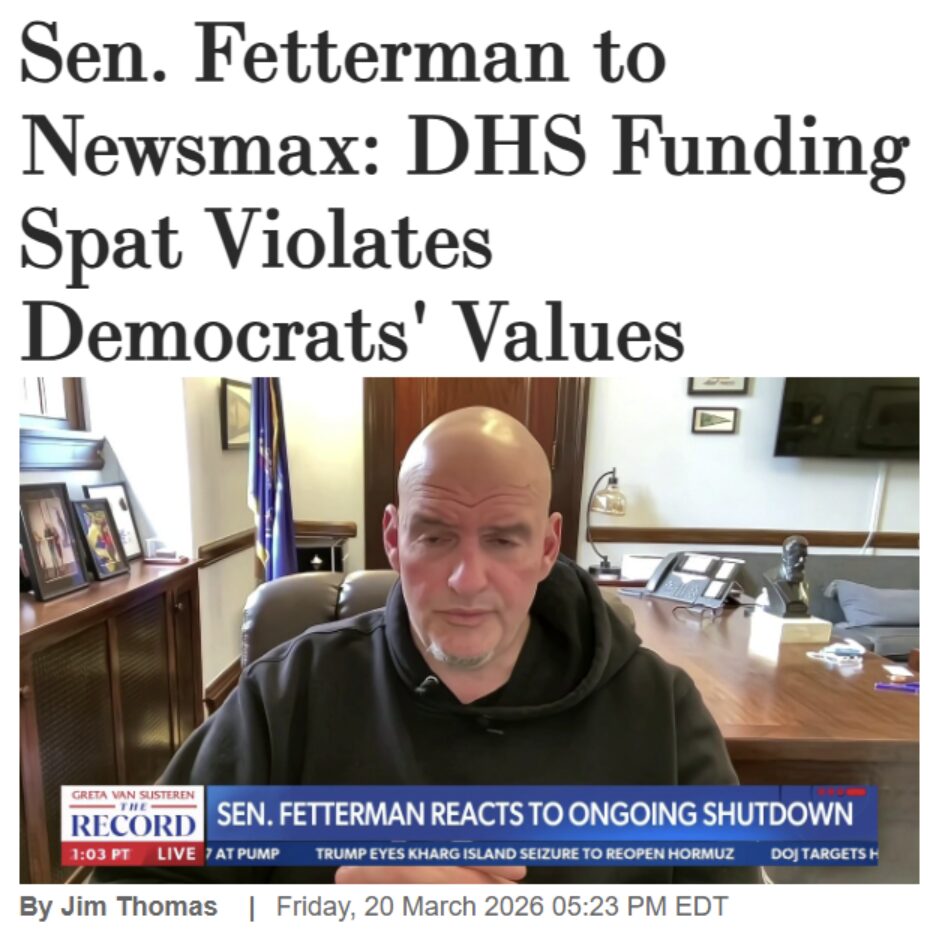 Ironically, when Fetterman came to the Senate we thought he was a little deranged, but it turns out he’s about the only voice of sanity in the party.