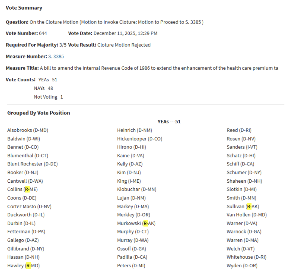 A miserable development in the fight for fiscal sanity and common sense health reforms. Four Republicans teamed with all the Senate Democrats to vote for