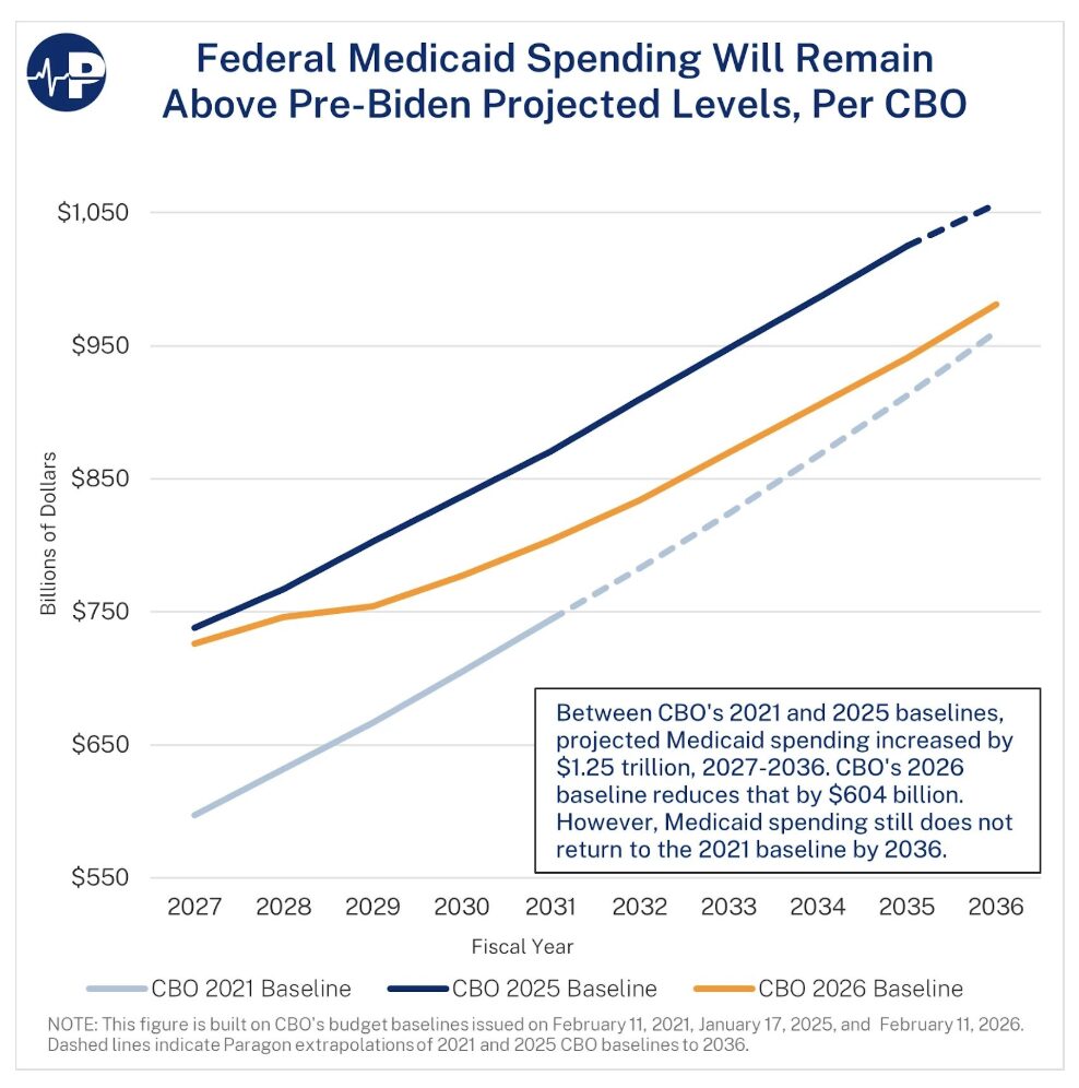 The Big Beautiful Bill dialed back some of Biden’s massive Medicaid spending increase, but according to the latest CBO baseline, Medicaid spending is still slated