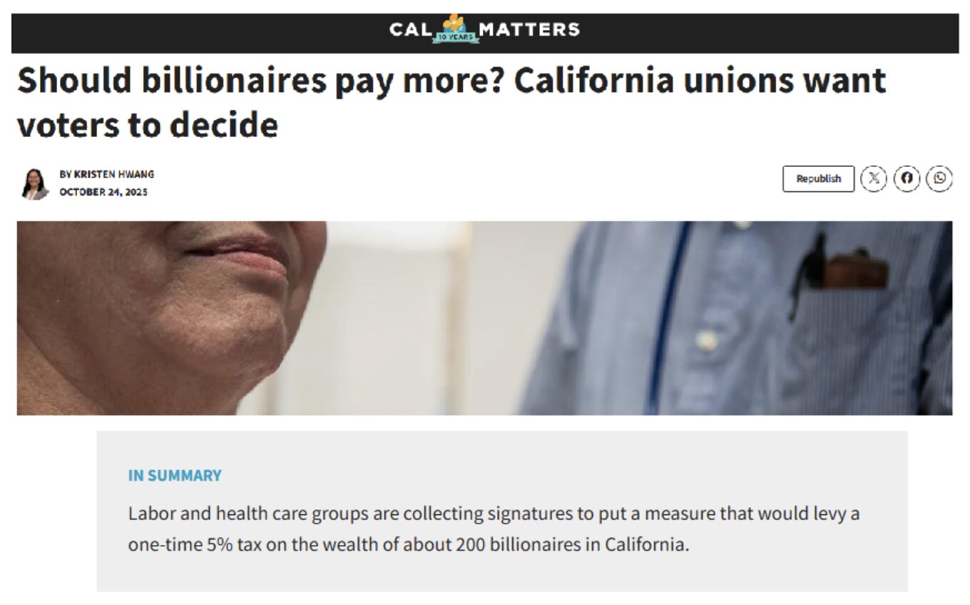 Where else would a crazy idea like this come from? The unions supporting the 2026 ballot initiative say their billionaires tax would help prop up