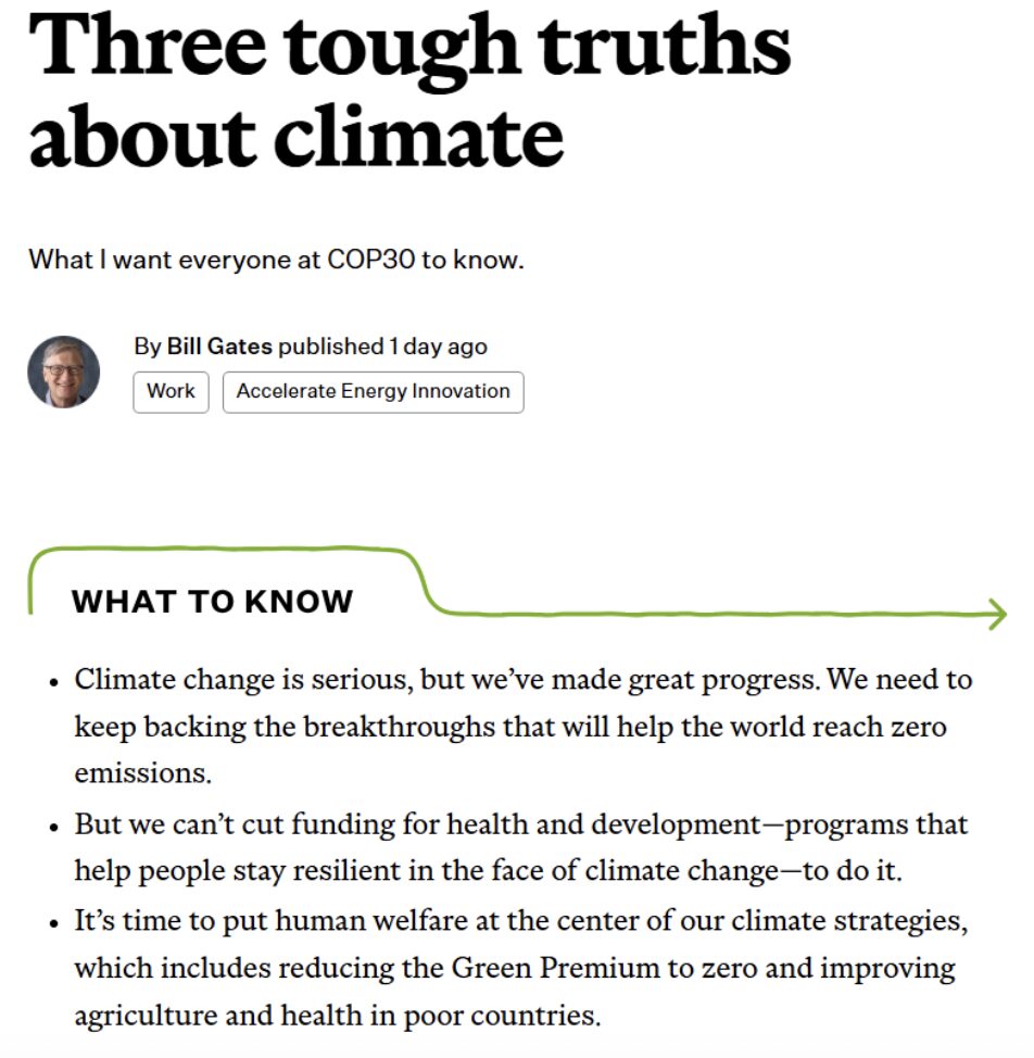 The news that philanthropist Bill Gates is pivoting away from climate change alarmism to focus on technological improvements and improving health outcomes for the poor,
