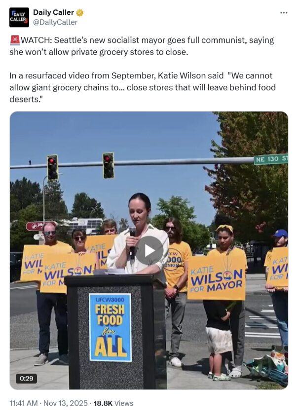 We reported the day after the elections that Seattle voters had rejected a socialist mayor. But then all the mail-in ballots were counted and Katie Wilson, a 43-year-old community organizer who is still partially supported by her parents, eked out a victory with 50.4% of the vote.