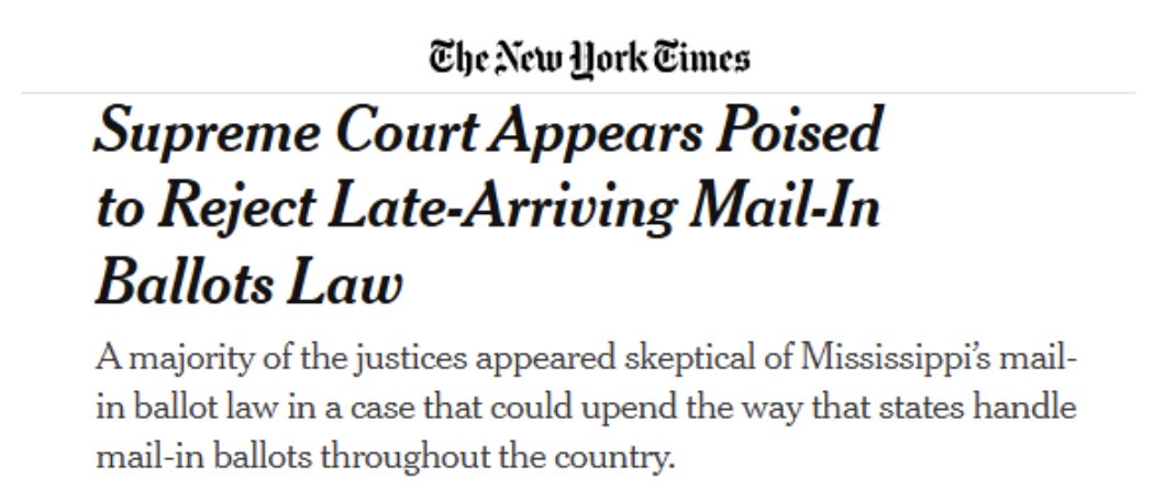 We loved this headline from yesterday’s Supreme Court oral arguments on mail in ballots: