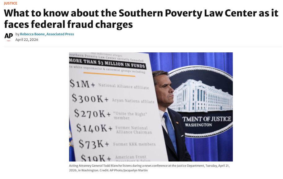 “The SPLC was not dismantling these groups. It was instead manufacturing the extremism it purports to oppose by paying sources to stoke racial hatred,” alleges Acting Attorney General Todd Blanche.