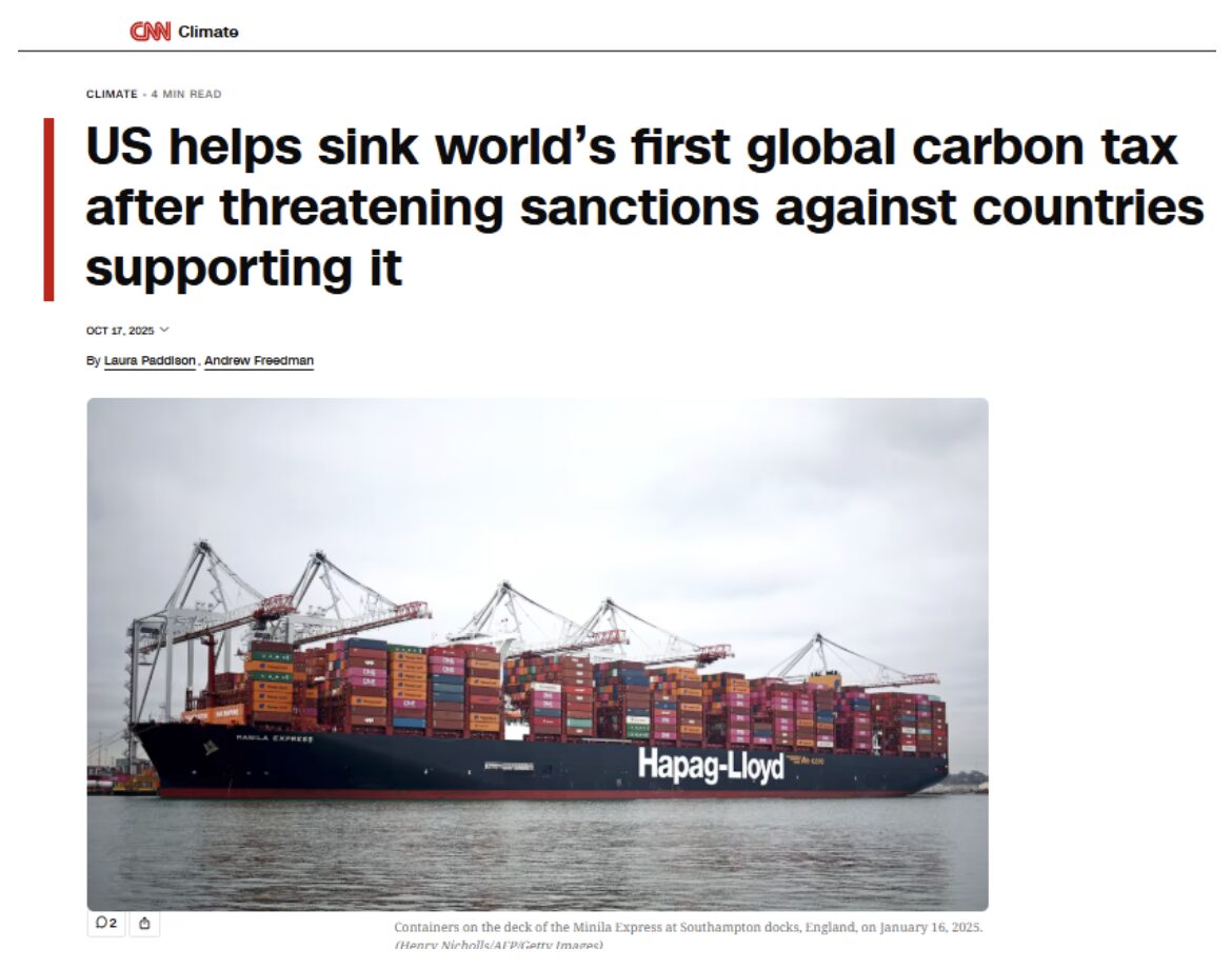 Europe and China launched a major lobbying campaign for this tax, which was to be administered by a UN agency called the International Maritime Organization.