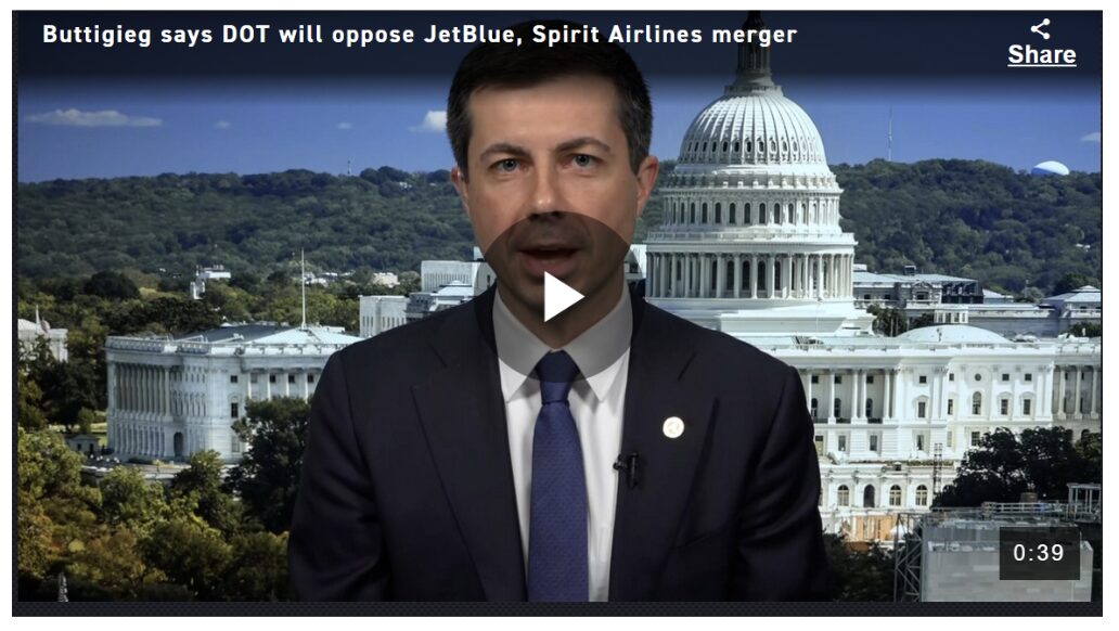 It wasn’t just Joe Biden who boneheadly blocked the Spirit – JetBlue merger. Another villain in this scandal is Pete Buttigieg, whose only two qualifications to be Transportation Secretary were 1) he claimed to ride his bike to work; and 2) he is gay. (Remember he took a few months off in the middle of his stint at DOT for paternity leave.)