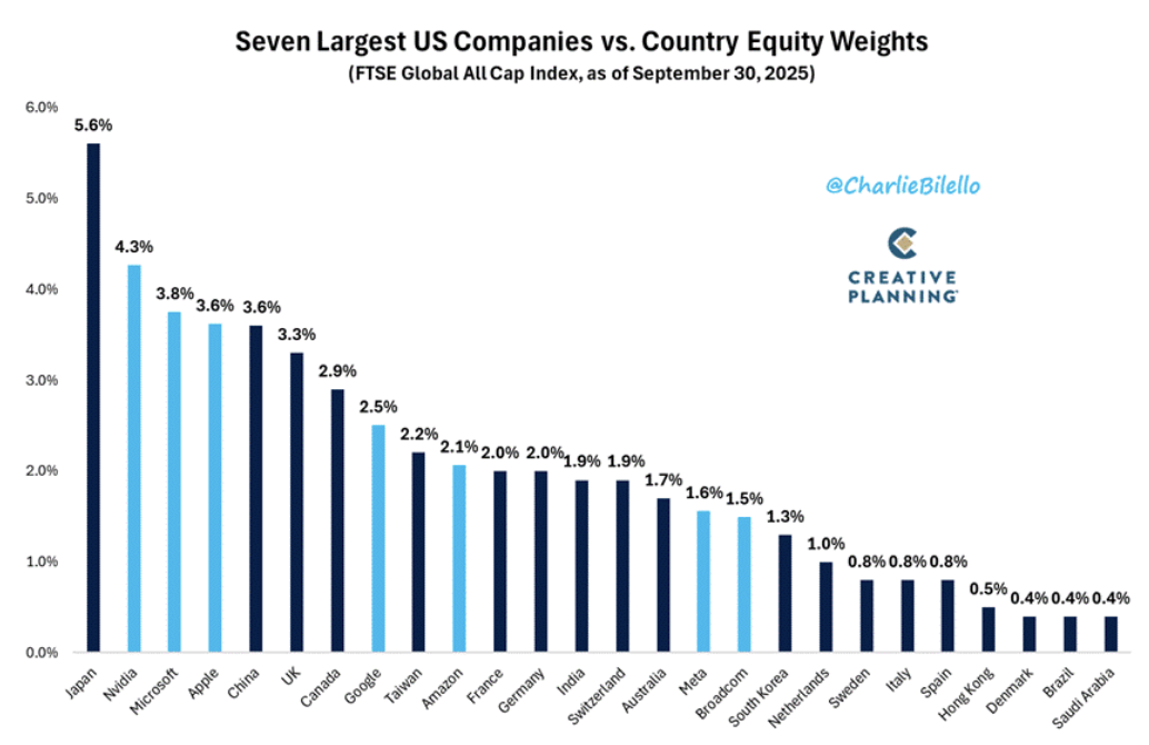 Nvidia and Microsoft are now each individually larger by market capitalization than any national stock market in the world except Japan. Apple’s market value is about equal to China’s.