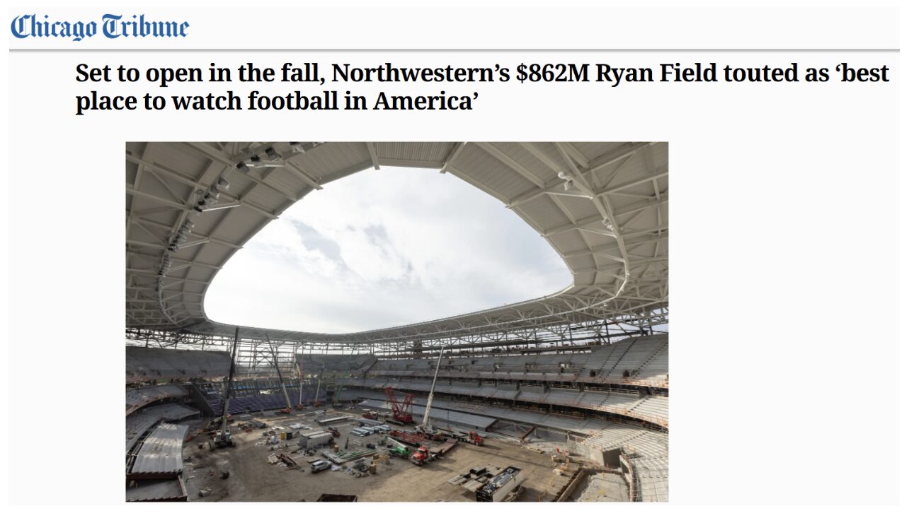 This got our attention. Illinois’s Northwestern University is finishing up the construction of a new $800 million football stadium. This is supposedly a nonprofit “educational” entity.