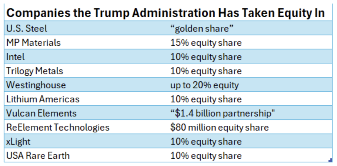 This trend of the Trump administration investing taxpayer dollars into equity shares of private companies has our hair on fire. Here’s a handful of recent examples: