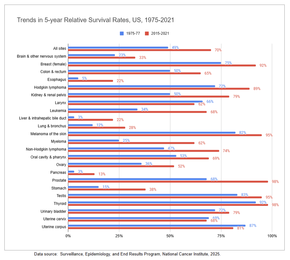 Survival rates have climbed dramatically for many cancers that used to be a death sentence: