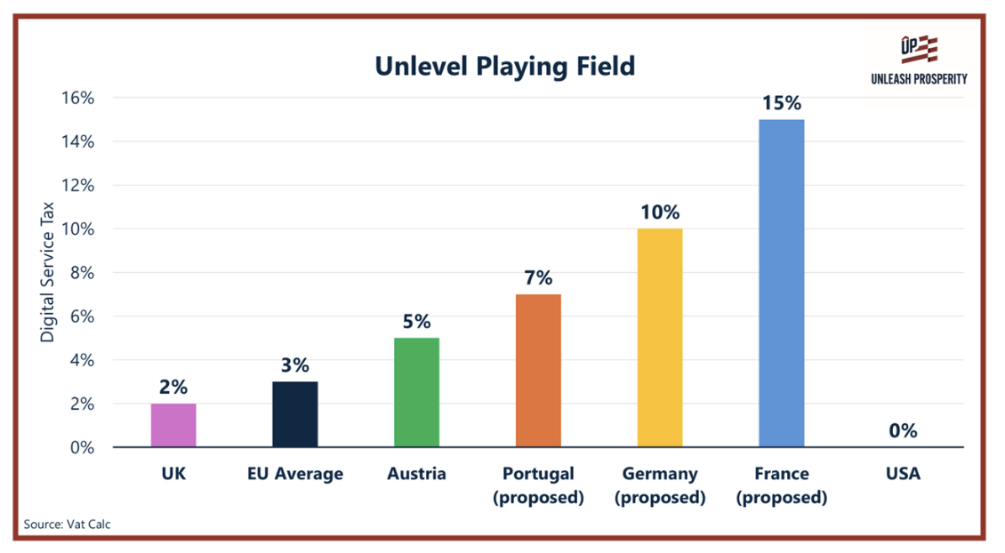 The French are pushing to increase their digital services tax (DST) from 3% to 15%. This would be the highest tax on tech companies in the world. The U.S. imposes no such tax.