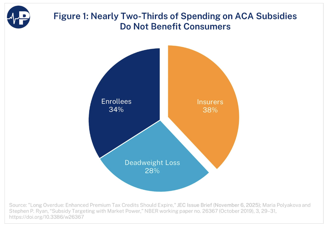 Two-thirds of the “Affordable Care Act” subsidies don’t even go to the patients. Most of the money goes to the profits of the insurance companies or is simply wasted in deadweight losses.