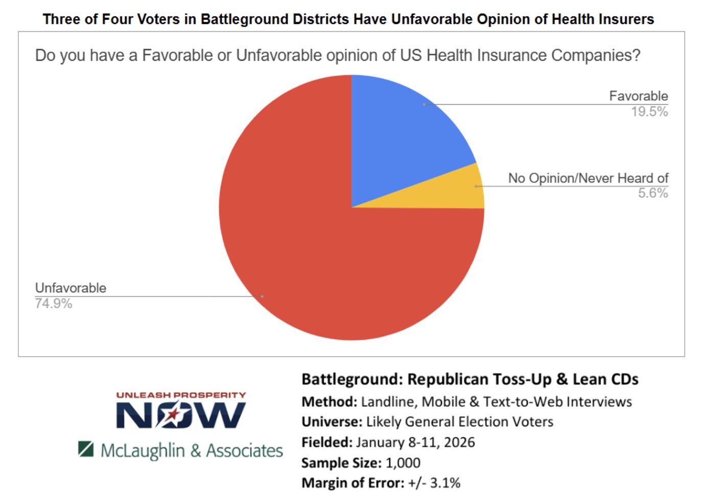 You can see from the chart below that voters are paying attention to us at UP. Three of four voters have an unfavorable opinion of United Health, Aetna, Blue Cross, etc. And that hostility is well deserved: the insurers are leading the lobbying blitz on Capitol Hill to expand Obamacare subsidies because the dollars flow right into their profit margins.