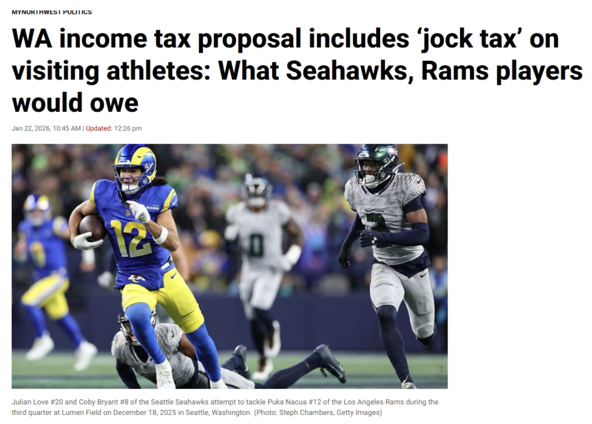 Washington’s Democrat governor Bob Ferguson has just proposed a “jock tax.”