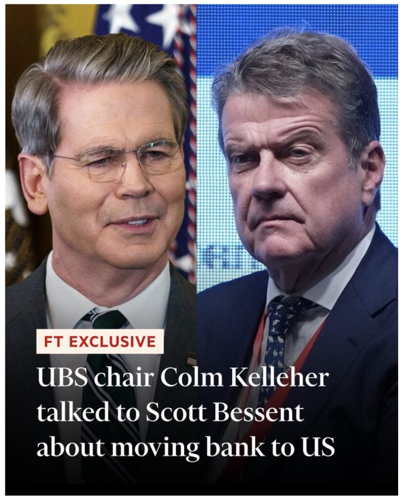 Kelleher and Bessent held talks in recent months about what a move to the US would look like for the lender, with the Trump administration receptive to welcoming one of Switzerland’s most prized assets, according to three people familiar with the conversation.