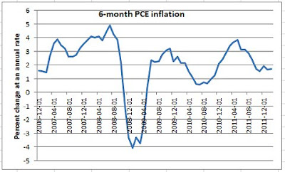 At COAL, Paul Krugman rebuts inflation claims, but overlooks the three-peak correlation between the personal consumption expenditures deflator and the euro/dollar exchange rate: