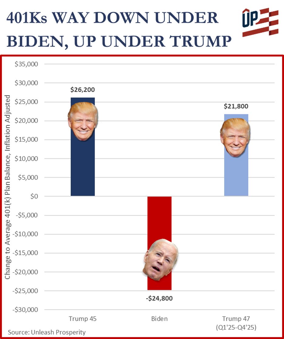 Inflation under Biden decimated retirement accounts and resulted in real losses to the average 401(k) plan. The situation has completely reversed under Trump.