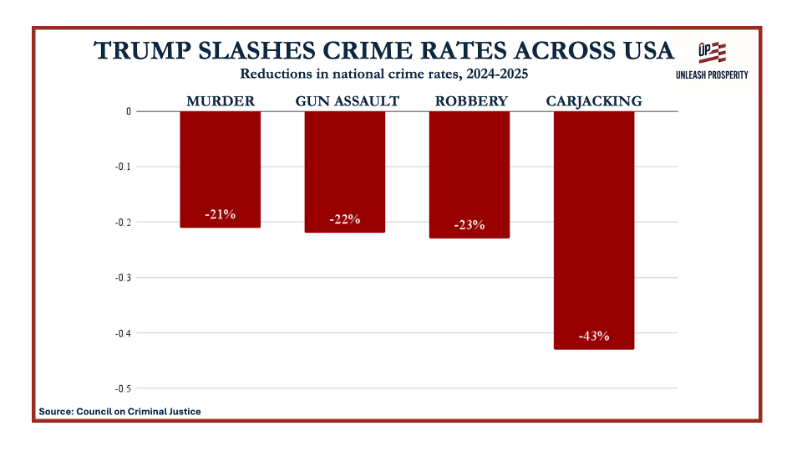 This brief analysis by the economics team at Unleash Prosperity summarizes the good news on the direction of the U.S. economy after one year. Nearly every measure shows vast improvement over the Biden years. Here are some of the highlights: