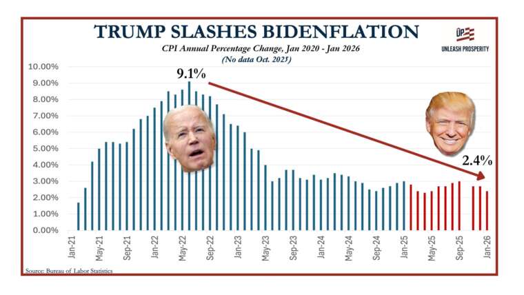 This brief analysis by the economics team at Unleash Prosperity summarizes the good news on the direction of the U.S. economy after one year. Nearly every measure shows vast improvement over the Biden years. Here are some of the highlights: